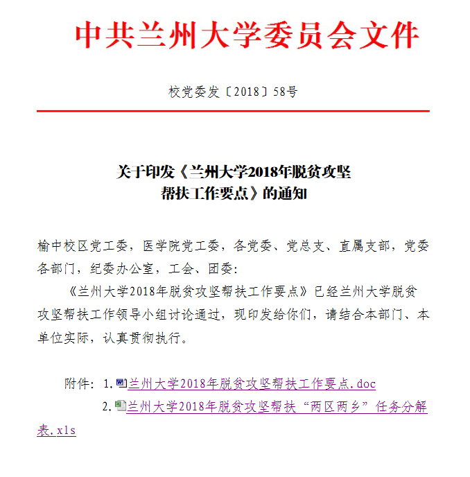 / 关于印发《兰州大学2018年脱贫攻坚帮扶工作要点》的通知