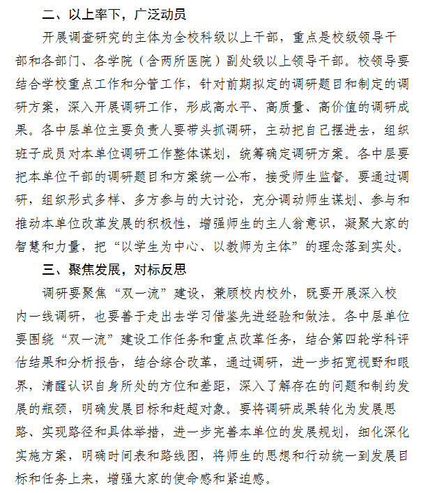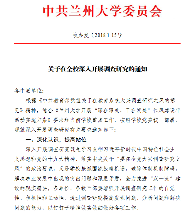 / 关于在全校深入开展调查研究的通知