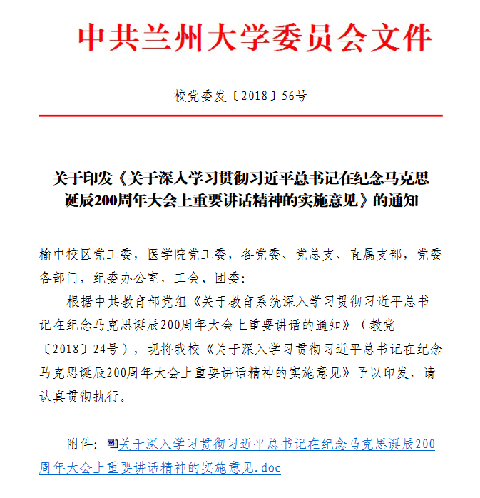 / 关于印发《关于深入学习贯彻习近平总书记在纪念马克思诞辰200周年大会上重要讲话精神的实施意见》的通知