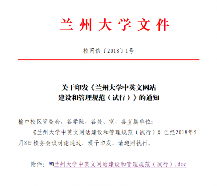 / 关于印发《兰州大学中英文网站建设和管理规范(试行)》的通知