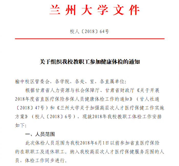 / 关于组织我校教职工参加健康体检的通知